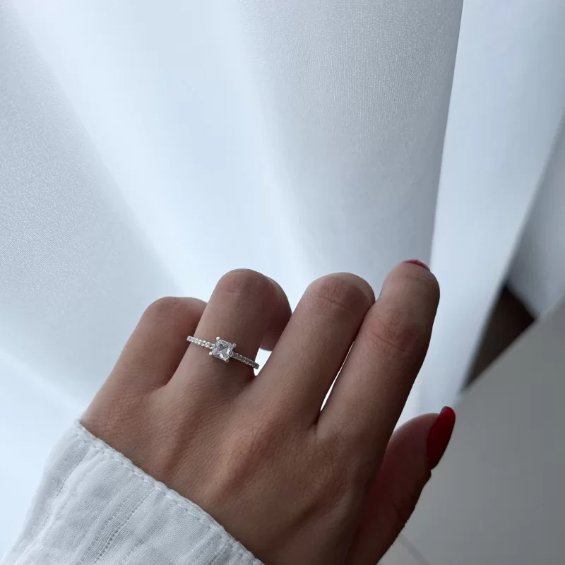 Anel Solitário Quadrado Cravejado