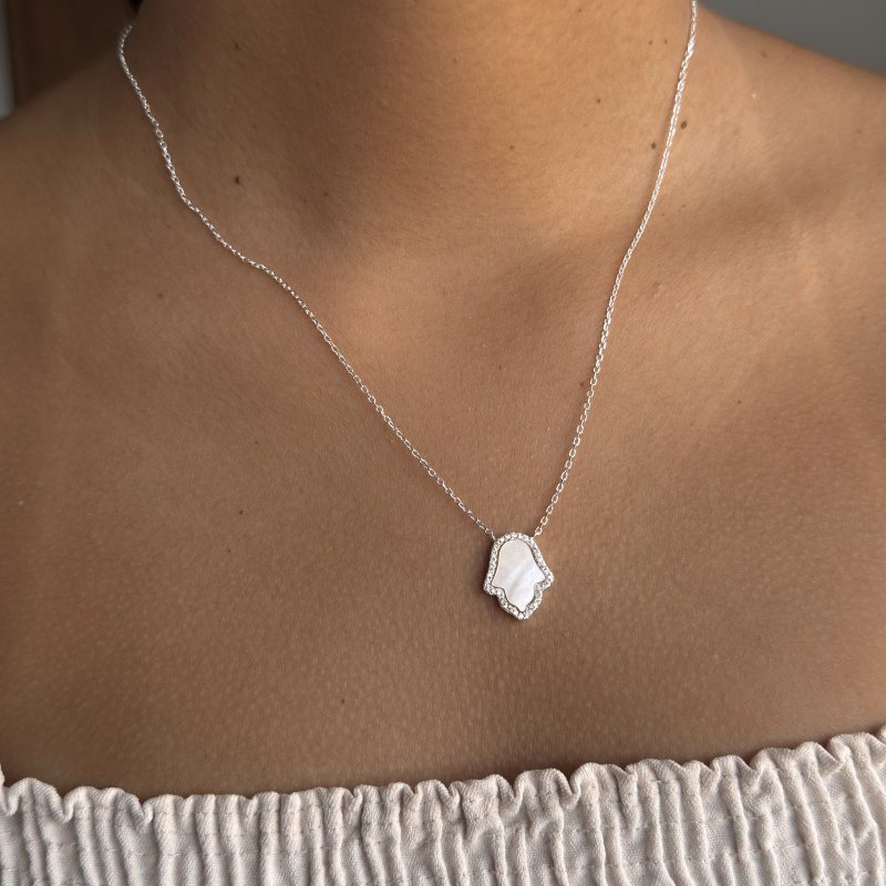 Colar Mão Madrepérola Cravejada